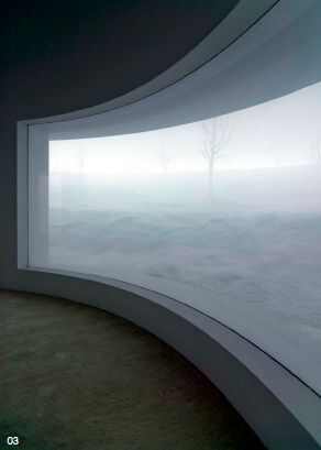 传统的景现结合了三维前景与背景画。“场景6”,却是一个完全的造型景观,没有人造雾和灯光。观众可以通过一个狭长的走廊到达中央观景台来观看景观。从一个坐着的位置,参观者由全景窗口看到辽阔的雪域和光秃的树木。景观,观景台及其内部全是白色的。与较早形式的全景式建筑相反,“场景6”这个装置不打算进行娱乐或教导。艺术家却利用远景的无限性来吸引参 观者的眼睛进行内观沉思的自我。